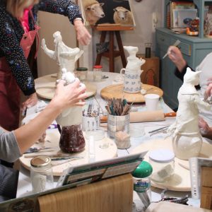 Le rendez-vous était pris depuis des mois, la journée était réservée pour toutes quoi qu’il arrive… Ce lundi, 4 amies se sont réunies autour de ma table de travail avec la ferme intention de partager un bon moment et de créer ensemble une sculpture. Chacune avait préparé un bon petit plat pour le repas…