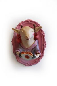 Les épiciers l’âne 43 cm de hauteur – la vache 38 cm – la chèvre 34 cm – la brebis 33 cm – le lapin 28 cm – la poule 21 cm pâte à bois, pots à épices anciens et dinette – Milie 2019 Voilà quelques gros plans de cette dernière série d’animaux créés dans…