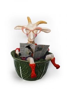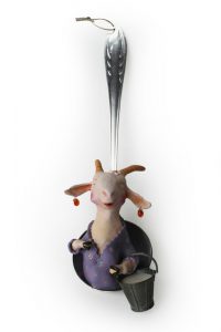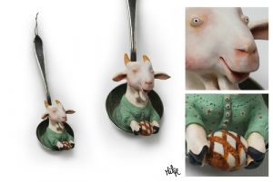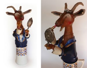 Elle est aussi à l’affiche de l’exposition très louche en cours au restaurant LE KIWI, au Mas d’Azil en Ariège. Je la trouve bien rigolote cette chèvre. Une sorte de mixte involontaire entre la laitière et la jeune fille à la perle de Johannes Vermeer… façon Milie !     La laitière aux boucles d’oreille…