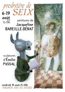Me voici rentrée de vacances… Je n’ai pas pris le temps avant de partir de sélectionner quelques photos de l’exposition de Seix début août. J’exposais à l’ancien presbytère en compagnie de Jacqueline Bareille-Dénat. Mes sculptures répondaient à ses peintures. Après avoir découvert le jardin de curé, les visiteurs rencontraient Bichette qui les guidait vers l’expo.…