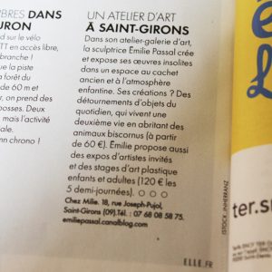 Je ne vous ai pas dit… un petit encart présentant mon atelier est paru dans les pages régionales Midi-Pyrénées du ELLE de cette semaine très contente ! Merci à Élodie Pagès d’avoir pensé à moi ! (et je suis doublement contente car j’aime beaucoup Sandrine Kiberlain, magnifique sur la couv.)