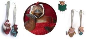 La poulette au camay a gagné le gros-lot au LOTO inter-poulailler : UN AMOUREUX ! Ils en sont encore tout baba… quelle histoire quand même ! pièces uniques et originales – à suspendre – créations 2008 (pâte à bois dans cuillères à soupe – 21 cm de…