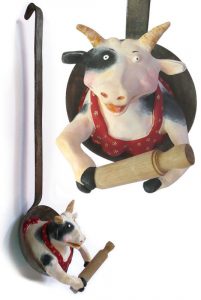 Une nouvelle recrue… au lait cru ! Publié le 24 juillet 20084 août 2021 par Emilie Passal — 3 commentaires pièce unique et originale – à suspendre – créations 2008 (pâte à bois dans une louche – 42 cm de hauteur avec le manche, la vache environ 12 cm) Lire plus